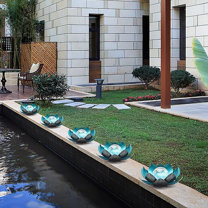 - [Romantic decoration] At night, they emit a warm white glow, bringing a charming decorative effect to your garden at night. The beautiful lotus shape and subtle water ripple patterns are displayed on your terrace in a special way, and the beautiful visual effects create a romantic atmosphere. This is your preferred gift for family and friends
