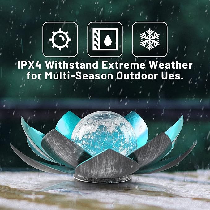 - [Romantic decoration] At night, they emit a warm white glow, bringing a charming decorative effect to your garden at night. The beautiful lotus shape and subtle water ripple patterns are displayed on your terrace in a special way, and the beautiful visual effects create a romantic atmosphere. This is your preferred gift for family and friends