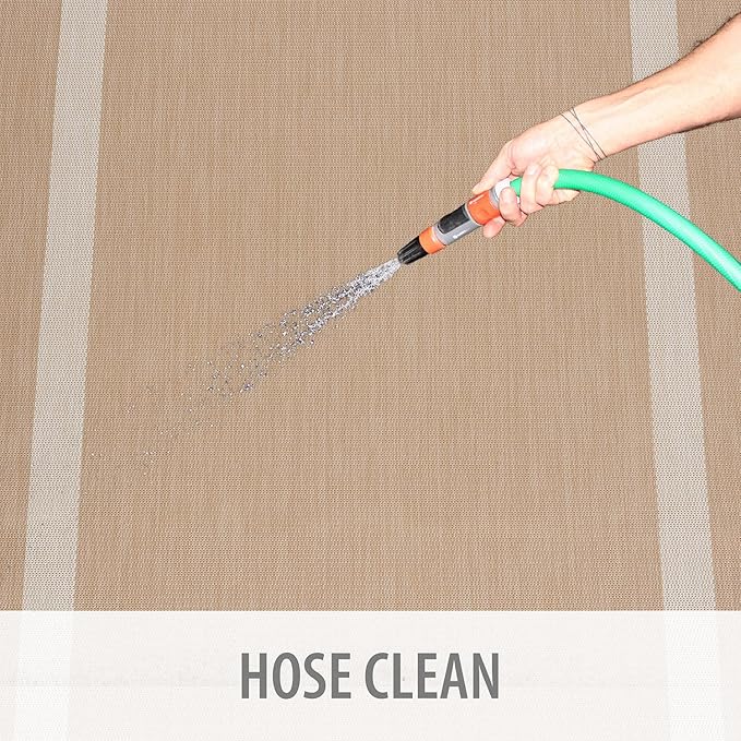- [ WASHABLE: ] You can vacuum with a vacuum cleaner indoors and you can wash with a hose outdoors. To wash an outdoor rug, spray the surface with a 5-1 mixture of mild dish soap and water and then rise with a hose.