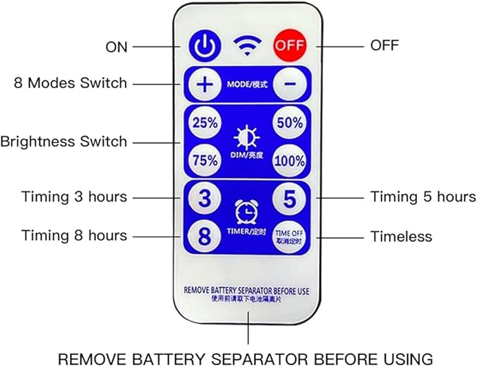- 8 SETTING MODES: 8 lighting modes to change: combination, in wave, sequential, slo-glo, chasing/flash, slow fade, twinkle/flash, and steady-on.You can change the modes by the remote. PLS NOTE: The remote only work for the solar modes NOT for the plug