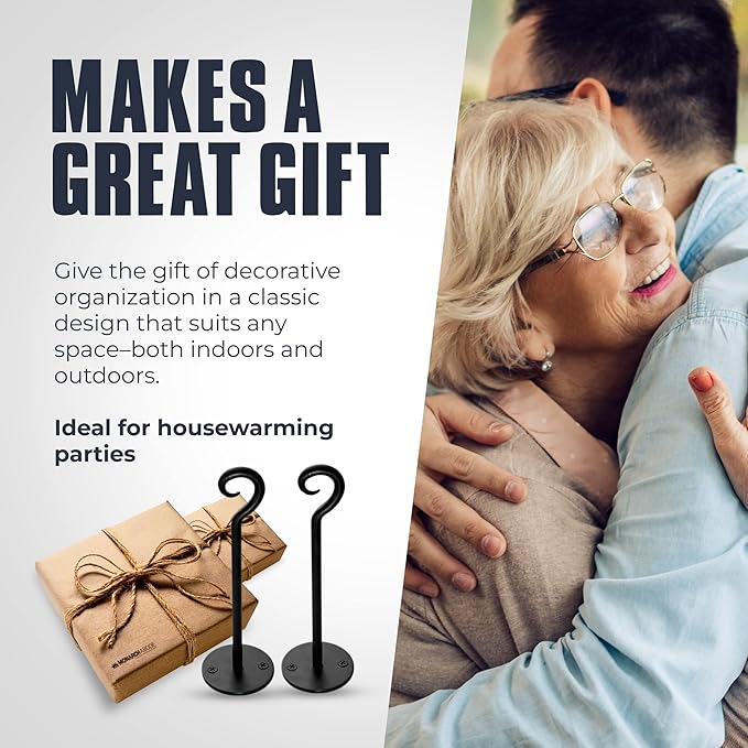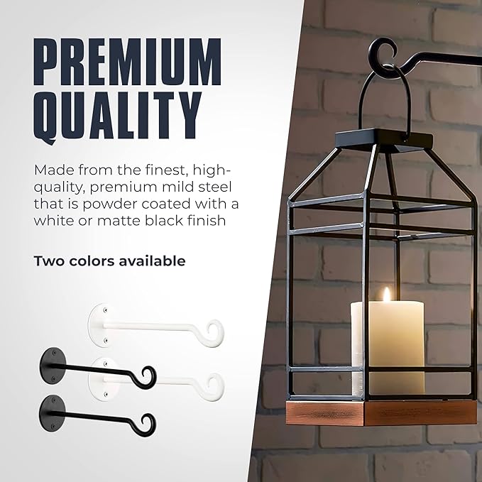 Monarch Abode Wall Mount Plant Hook Premium Metal Decorative Hanging Bracket for Plants Bird Feeders Planters Home Decor, Heavy Duty, 7.5 inch, Set of 2, Black