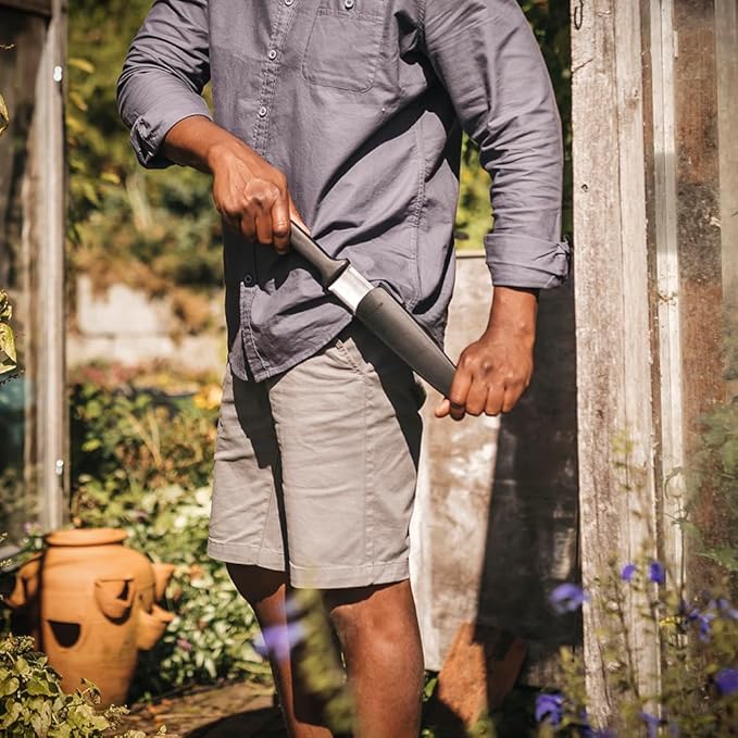 - MAXIMUM POWER AND PRECISION: Dual-edged knife with precision-ground edge designed for multi-purpose cutting; Serrated blade edge for sawing through thick growth; Forked tip for efficient weeding; Easy-to-read measurements help determine plant depth; SoftGrip handle boosts comfort and reduces fatigue