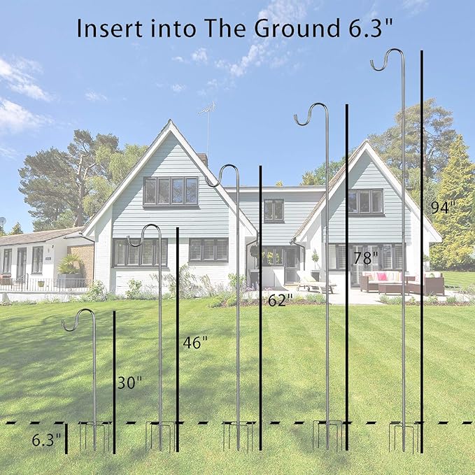 - ❤ADJUSTABLE & EASY TO INSTALL & STORE: Simply assembled by connecting thread. Each connecting pole is about 1.2ft long. You could adjust the length to how tall you want the shepherd hook to be. The ends could be easily pushed into soil and stay firmly under the ground. Dis-assembly could also be easily down by unscrewing the threads. You could store the parts in any corner of your house.