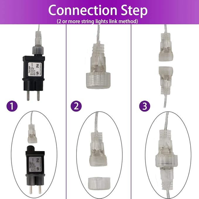 - Accept internal connect:The Icicle Lights Easy to use and extendable,Comes with an extra female plug at the end of each set for extension, can be connects up to 3 sets of same lights chain at a single run to fulfill different length requirements.3 meter independent cord each pack