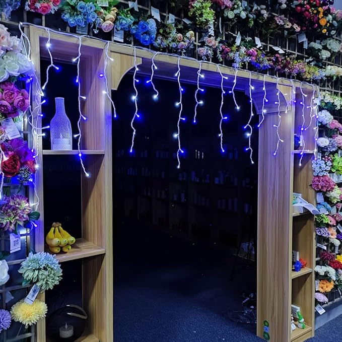 - Icicle Fairy String Lights: Waterproof for Indoor and Outdoor Use, Excellent decoration Icicle Christmas Lights to prettify the house eaves, windows, ceilings, patio,corridor, party, wedding, restaurant, shopping center, mall to create a romatic holiday atmosphere.