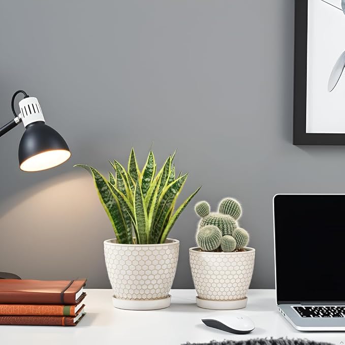 - 【Multi-Style Design】Using environmentally friendly materials, in line with the concept of sustainable development, combined with modern artistic elements, a variety of styles and colors are provided to meet different needs. Choose the ceramic flower pot with honeycomb embossed design, making each plant an art installation in the living room.