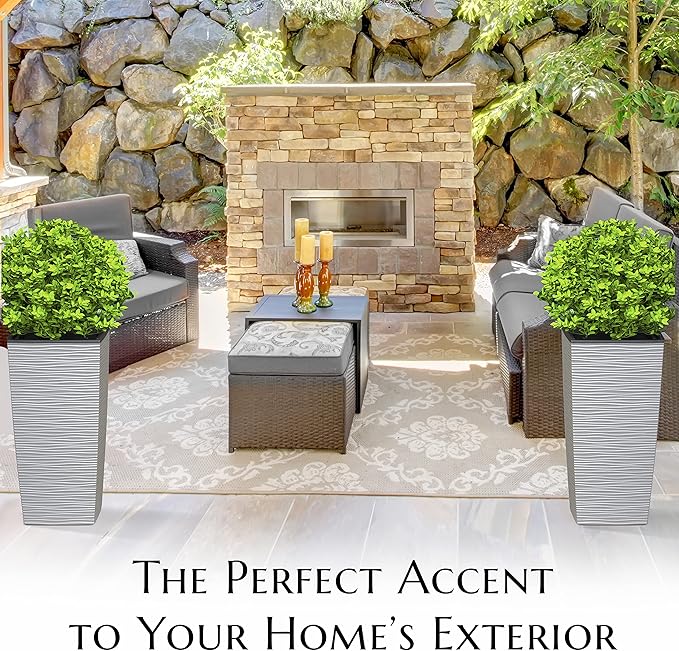 Mueller M-Resin Heavy Duty Tall Planter, Indoor/Outdoor Grande Plant, Tree, Flower Pot, 2-Piece Set, 24”, Modern Design, Built-in Drainage, Light Gray