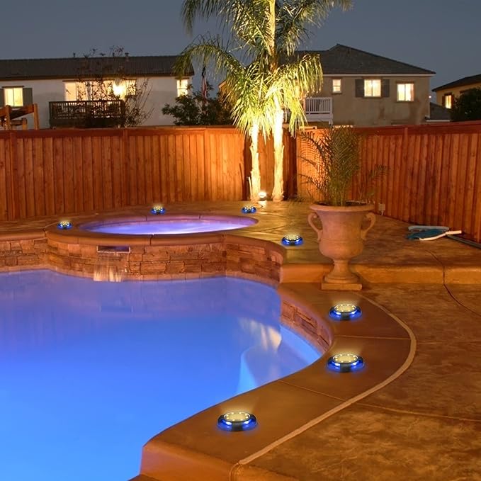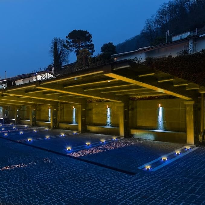 - ð¡ãUpgraded Solar Lights Outdoorã12 pieces solar outdoor light have 8 warm white main LEDs and 4 blue side LEDs. unlike the old ground lights, this solar light illuminates a wider range of colors, which is both bright and fun.