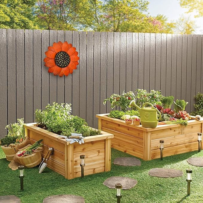 EASICUTI Orange Sunflower Metal Flowers Wall Decor Metal Wall Art Decorations Hanging For Indoor Outdoor Home Bathroom Kitchen Room Bedroom Living Room Garden Patio Porch 13 Inch
