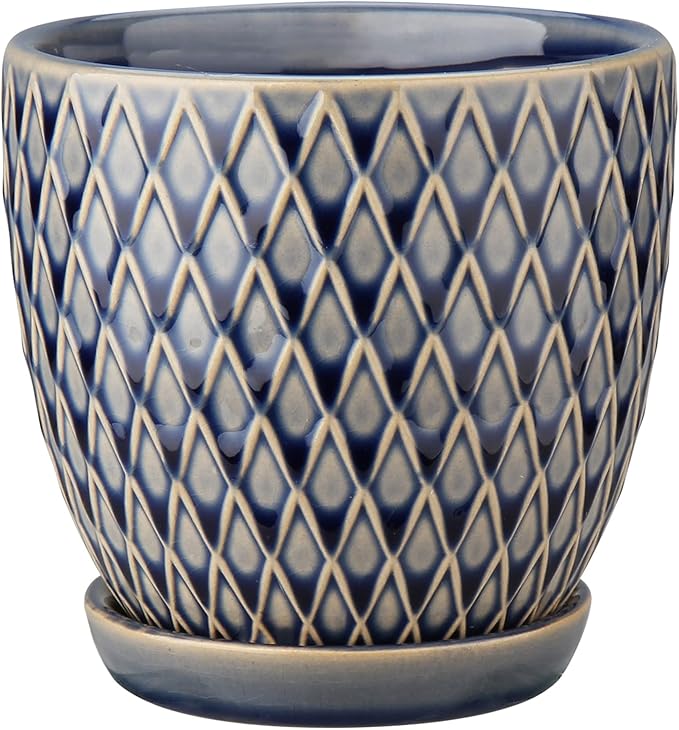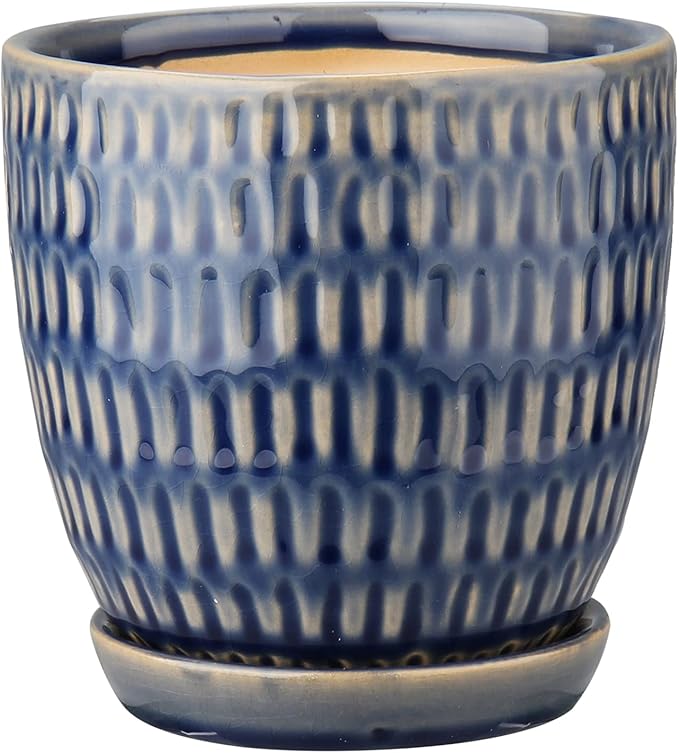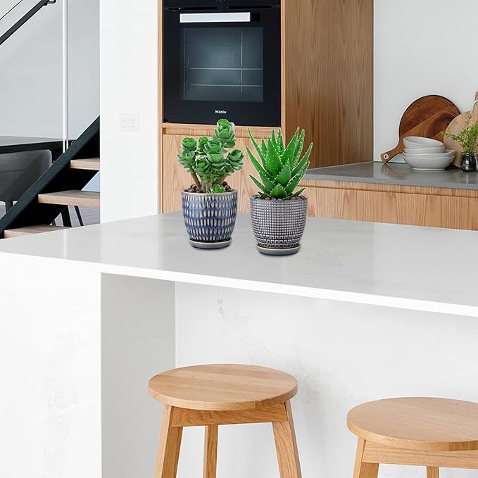 - 【4 inch Pots for Plants】:The shape of the blue ceramic planters for indoor plants adopted a tapered design, carving 3 types different geometric patterns on each surface of the flowerpot, which makes it exquisite and special, it is fits for any home/office decor