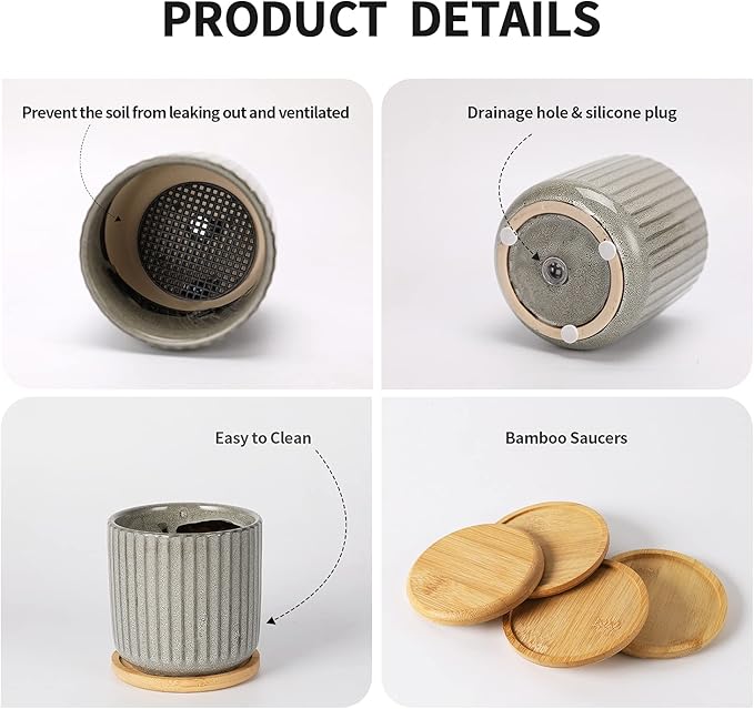 - Simple Modern Style - Succinct greyish green ceramic plant pots with stripe, suitable for growing potted plants indoor outdoor, Convenient for viewing at any time, and easy to take care of.