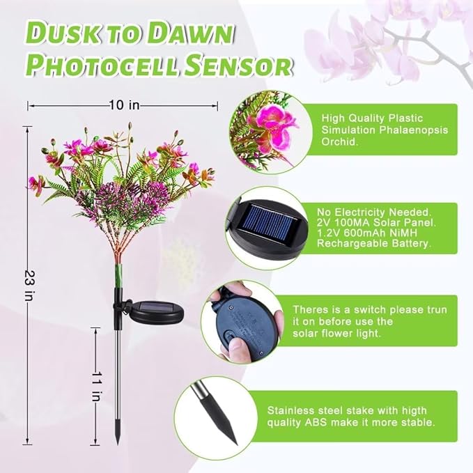 Neporal Garden Solar Lights Outdoor Waterproof IP65, 2PK Phalaenopsis Solar Flowers Solar Garden Lights Waterproof for Patio Decor, Yard Decor,Gardening Gifts for Women