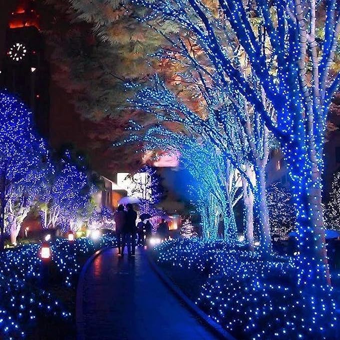 - Christmas Decoration String Lights: The ultra-long LED string light with 500 blue and white independent light LED bulbs is enough to illuminate larger gardens, terraces, churches, terraces, and so on, creating a romantic atmosphere. The bulb spacing is 3.94 inch, the lead wire is 10 ft, total length is 163 ft. It is very suitable for indoor/outdoor decoration of Christmas, birthday, party, Wedding, perfect for family, roof or balcony, etc.