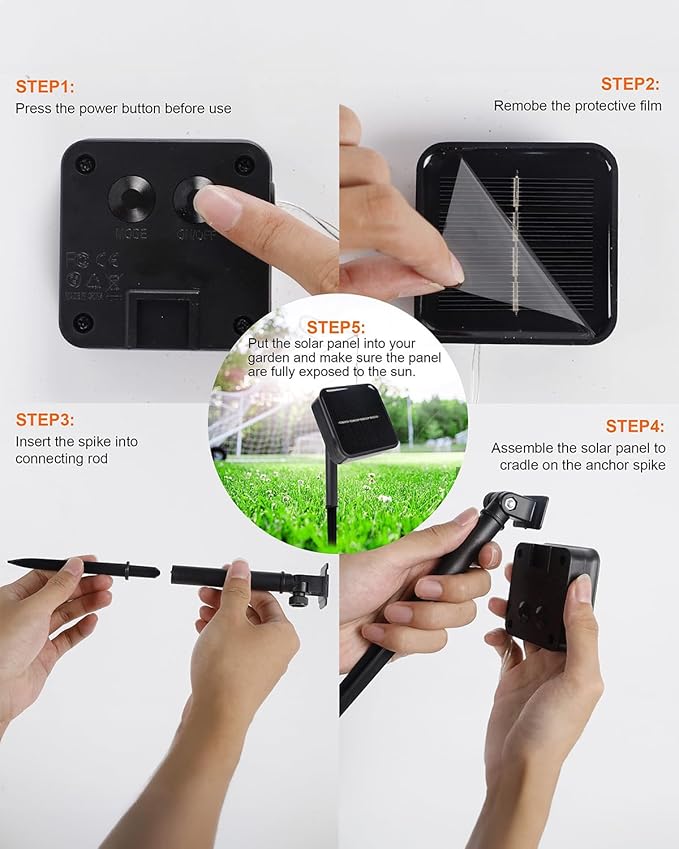 - Weather and Water Proof: The outdoor solar lights are made of high quality thick PLASTIC, no need to worry about rust. Suitable for outdoor use, the light can work normally under all kinds of weather with the waterproof rating of IP44 and weatherproof, no worries about rain, snow, frost, or sleet (except rainstorm)