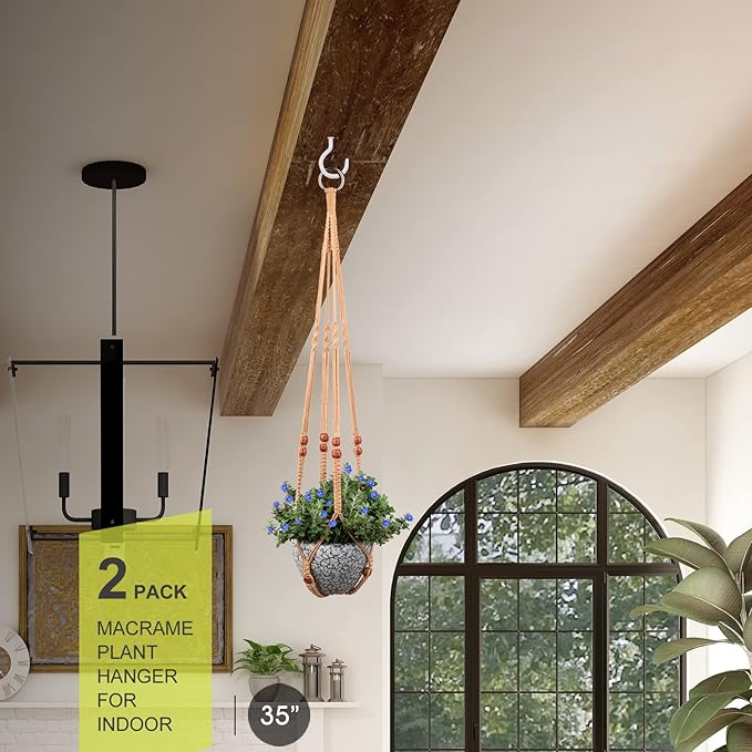 - What You Get & Buy with Confidence - 2 pack plant hangers and 4 pcs hooks kits (2 Hooks and 2 Ceiling Hooks) which are perfect gift for gardening lovers. BUY YOURS NOW and make a Boho fashion statement in your home. In case of any question, please contact us without any hesitation to solve.