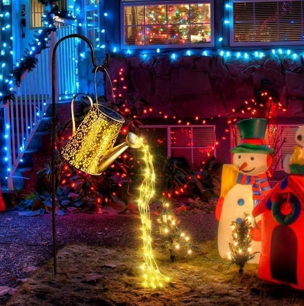 - ✨【Unique LED watering can】-This twinkle stars shower consists of 8 Copper wire 64 leds (31.5in) and 32inch shepherd hook.The solar garden decoration lights Create a unique focal spot in your after-dark garden by unleashing a cascade of the teeniest lights.