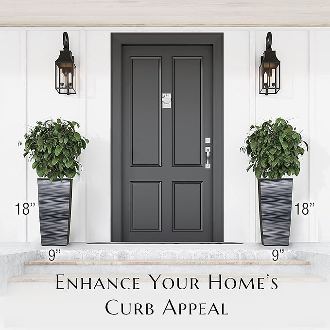 Mueller M-Resin Heavy Duty Tall Planter, Indoor/Outdoor Grande Plant, Tree, Flower Pot, 2-Piece Set, 18”, Modern Design, Built-in Drainage, Dark Grey