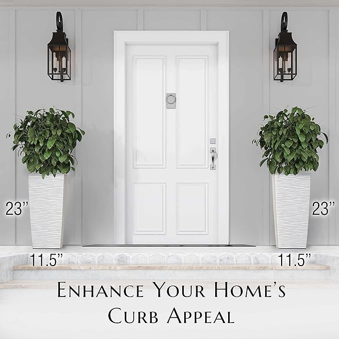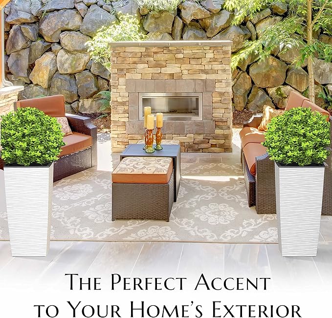 Mueller M-Resin Heavy Duty Tall Planter, Indoor/Outdoor Grande Plant, Tree, Flower Pot, 2-Piece Set, 24”, Modern Design, Built-in Drainage, White