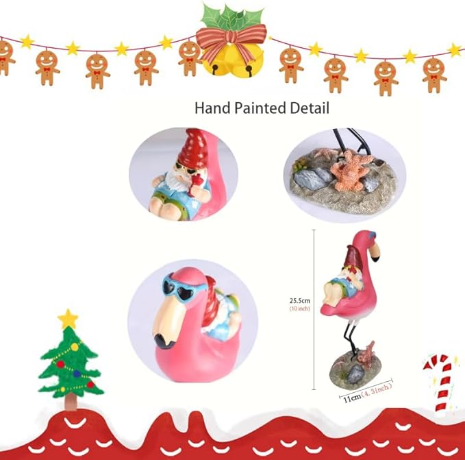 - Hand-Painted Charm for Endless Style Crafted with intricate hand-painted details, this playful gnome and flamingo duo bursts with vibrant colors and whimsical personality. From garden pathways and poolside lounges to desktops, balconies, or living room shelves, its eye-catching design adds a cheerful, tropical flair to any setting. Perfect for those who love to infuse spaces with humor and creativity!