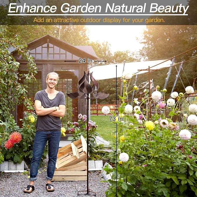 - ENHANCE GARDEN NATURAL BEAUTY: Add an attractive outdoor display by lining kinetic metal wind spinners in your garden.