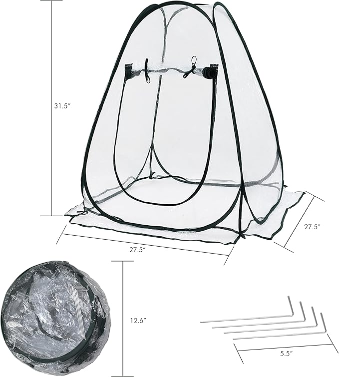 - Pop-up Design - The small greenhouse is made with environmental PVC material, non-toxic to plants. It pops up within two seconds, no assemblely required. When not in use, it can be folded flat.