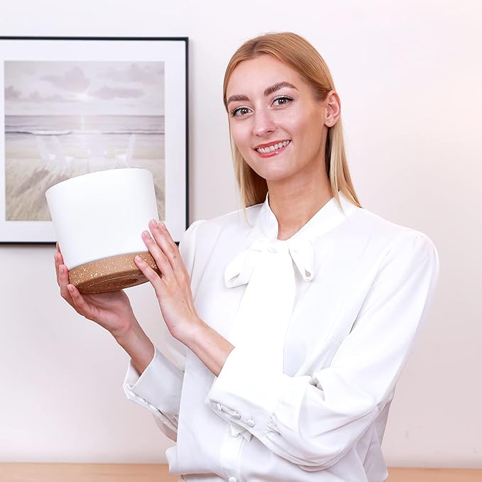- Self Watering Planter - With 3 drainage holes for watering and simplifies plant maintenance, make it easy to water your plants and prevent clogging, unique buckle desigh allows the saucer attached to the pot so its easy to move and hold waters! Also you can take off the saucer to clean the plant pot easily.
