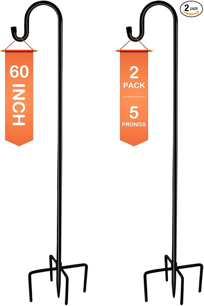- 【Upgraded in Stability & 5 Base Prongs】Compared to other similar hooks in the market, our heavy duty shepherds hooks have upgraded with 4 extra long and double-forked base prongs to be total 5 prongs which makes it the strongest garden hook in the market and maintain a fixed, upright posture while remaining firmly planted in the ground without easily falling down.