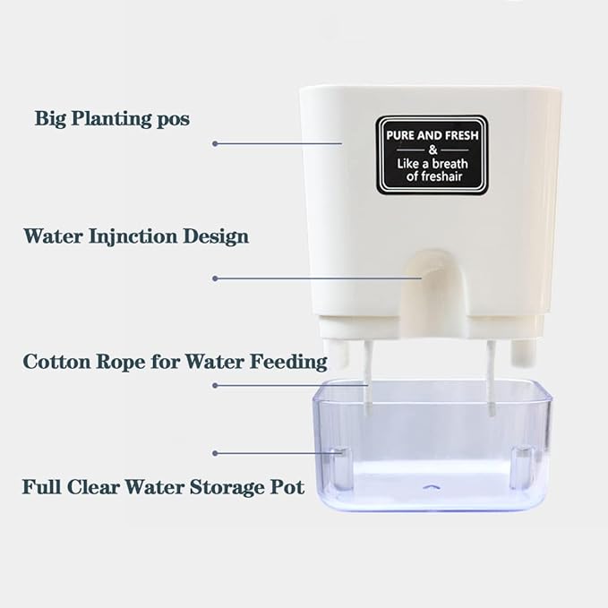 - Product design: the top and bottom layers of the automatic watering pot are removable, there is a water jet port on the rim and there are air circulation holes on the bottom of the pot. When adding water, all you need to do is pour from the rim inlet. Check the water level through a window to remind you when to water. Also, placing 2 sheets of toilet paper in the pot before planting will prevent soil from seeping through the drainage holes.