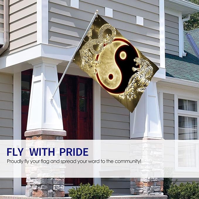 Yin Yang With Dragon Tiger Flag 3x5 Ft Indoor/Outdoor Yard Garden Lawn Holiday Decoration Banner Sign