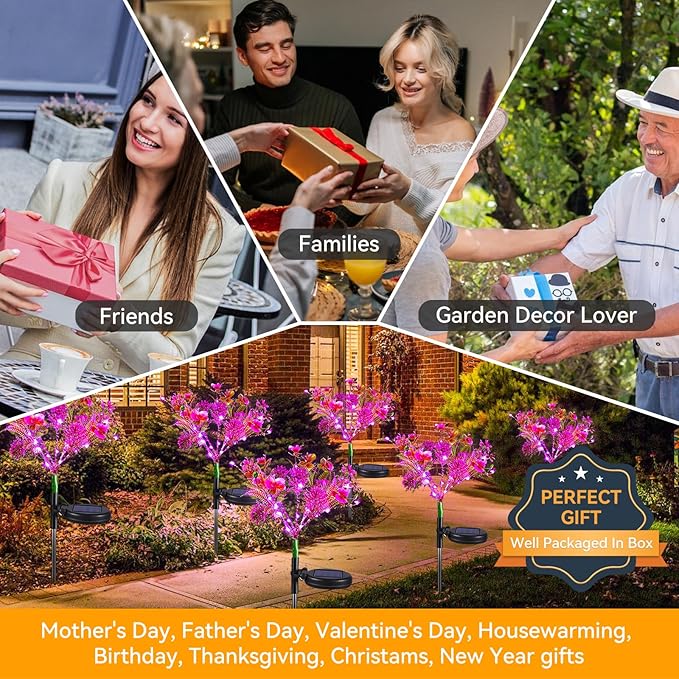 Neporal Solar Garden Lights, 4PK Purple Phalaenopsis Solar Flowers Outdoor Waterproof, Solar Lights Outdoor Decorative for Garden, Yard Decor,