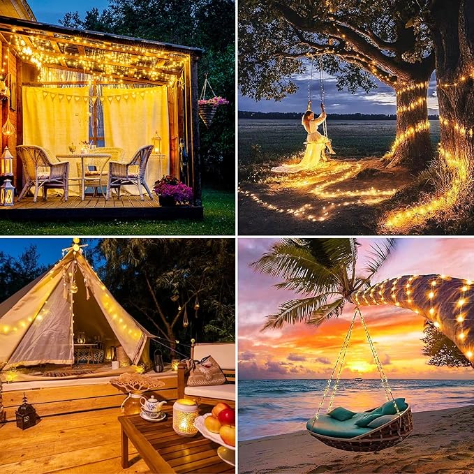 - 【Any Weather Suitable & Safety】When you are celebrating holiday outdoors at night, it would be terrible if the lights were extinguished by a sudden rainstorm. Fortunately, our solar fairy lights are IP44 waterproof, so don't be anxious about rain interrupting your recreation. Besides, insulated copper wires keeps the lights cool for safety.