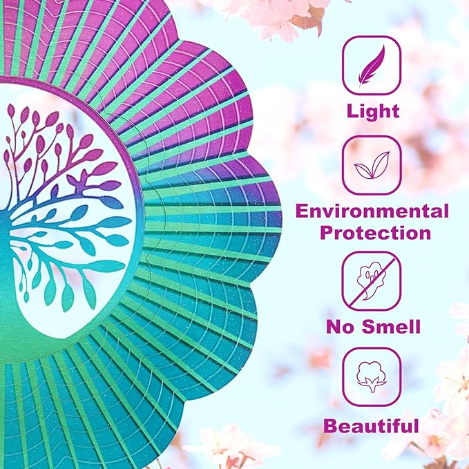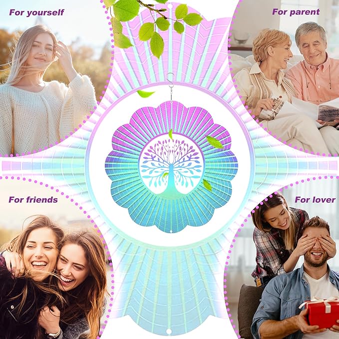 Decoroca Hanging Wind Spinner - Tree of Life 12in Wind Spinner Outdoor, Stainless Steel Wind Spinners Yard Garden Decor Indoor, Kinetic 3D Metal Crafts Ornaments Decoration