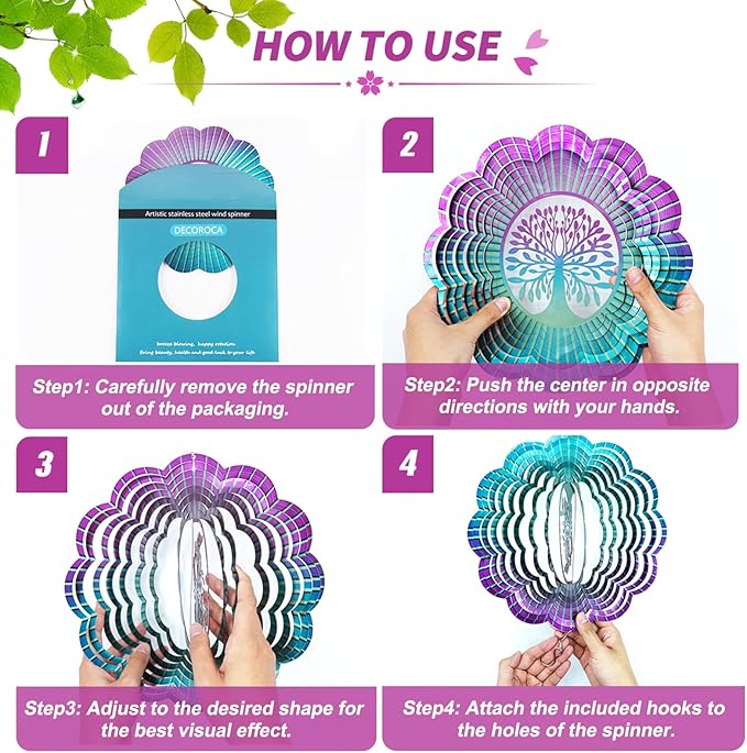 - π[HIGH QUALITY MATERIAL] Decoroca suspension type wind spinner decoration is made of durable stainless steel material through laser cutting technology, and the exterior is coated with high-quality epoxy resin coating, which can prevent wind and rain and never rust.