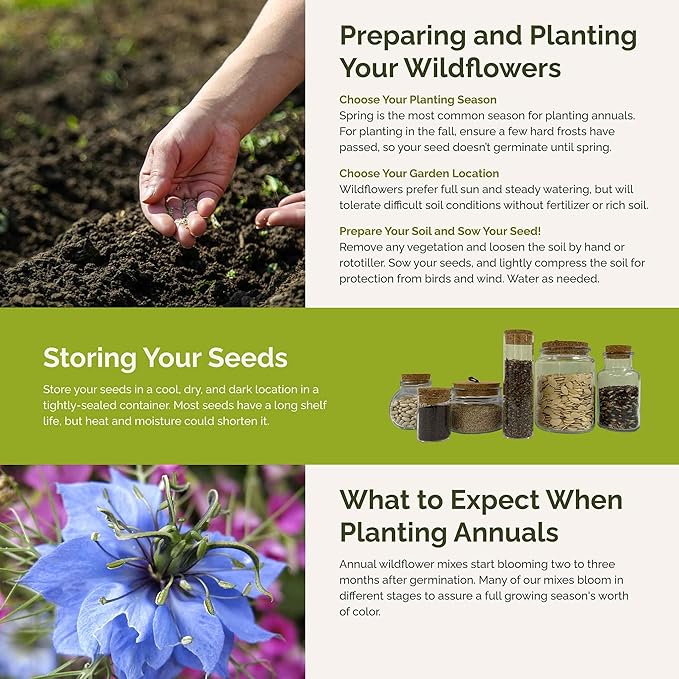 Eden Brothers Country Garden Flower Mixed Seeds for Planting, 1/4 lb, 120,000+ Seeds with Scarlet Flax, Cosmos Sensation | Attracts Pollinators, Plant in Spring or Fall, Zones 3, 4, 5, 6, 7, 8, 9, 10