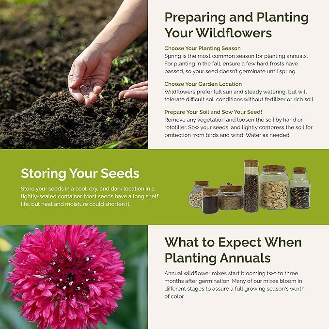 - Attracts Pollinators - With up to 1,200 square feet of ground cover, this non-GMO seed mix is sure to bring the bugs and birds to your yard! Easily attract bees, butterflies, and hummingbirds to pollinate blooms.