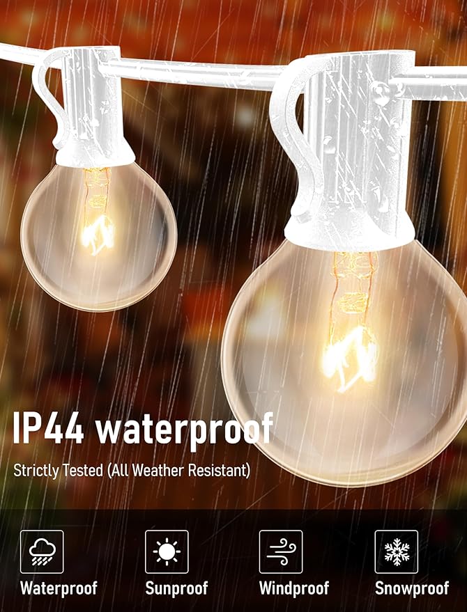 - ROMANTIC ATMOSPHERE: Outdoor white string lights is suitable for indoor/outdoor lighting applications. Fits great for patio, backyard, deck, bistro, café, pergola, garden, market, wedding party, Christmas decoration and many other occasions or events