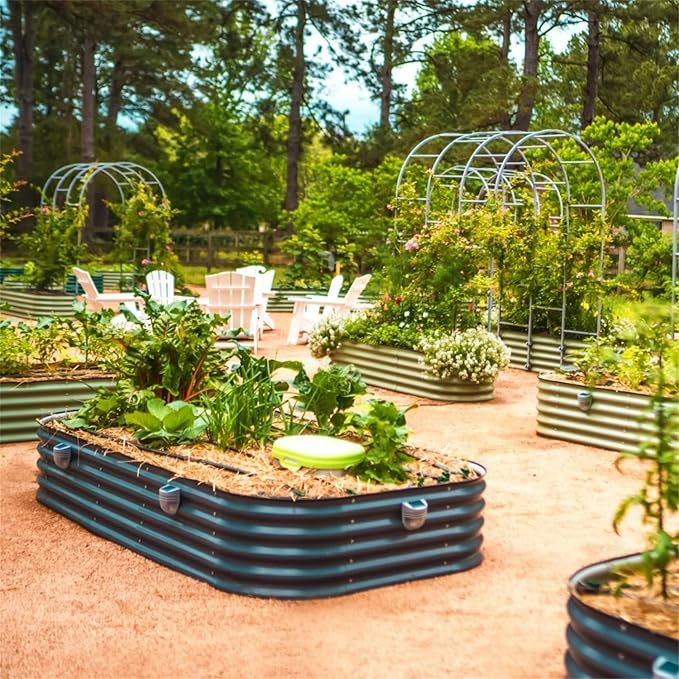 Vego garden Raised Garden Bed Kit, 17" Tall 10 in 1 Modular Raised Garden Beds Kit, Metal Planter Box for Vegetables, Flowers, Herbs, Modern Gray