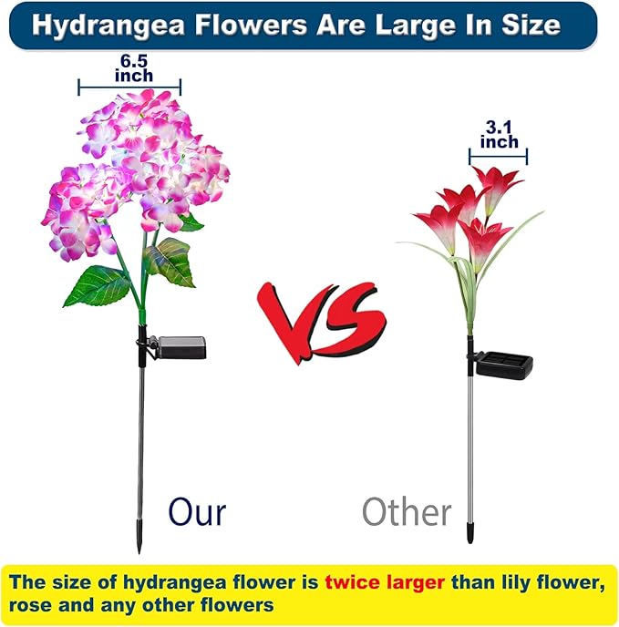 TONULAX Solar Garden Lights - 3 Pack Upgraded Version Outdoor Lights, Colorful Hydrangea Flower Light for Yard Decor, Garden Decoration, Two Lightning Modes & Enlarged Solar Panel