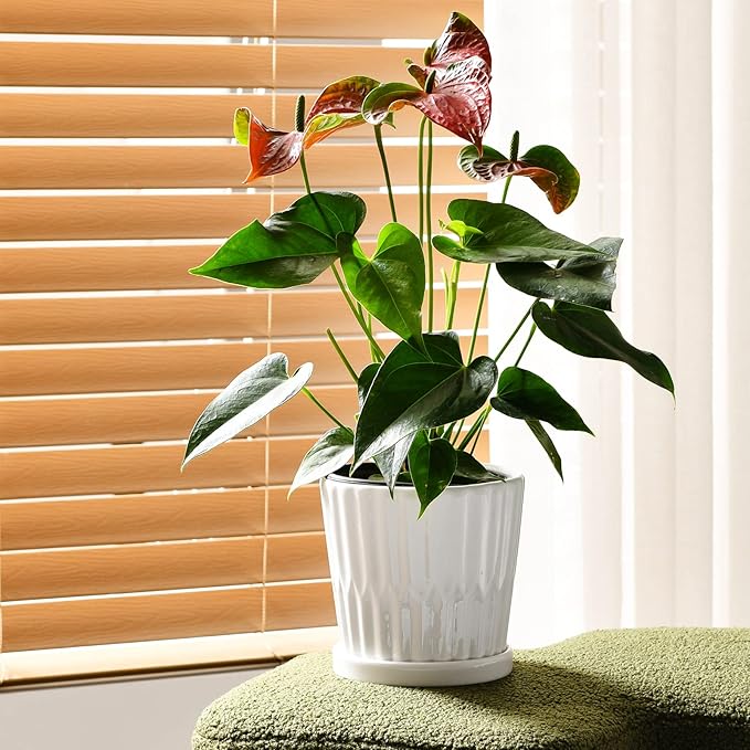 - [Drainage System]: Each ceramic flower pot has a drainage hole at the bottom with a saucer attached, which helps reduce water loss