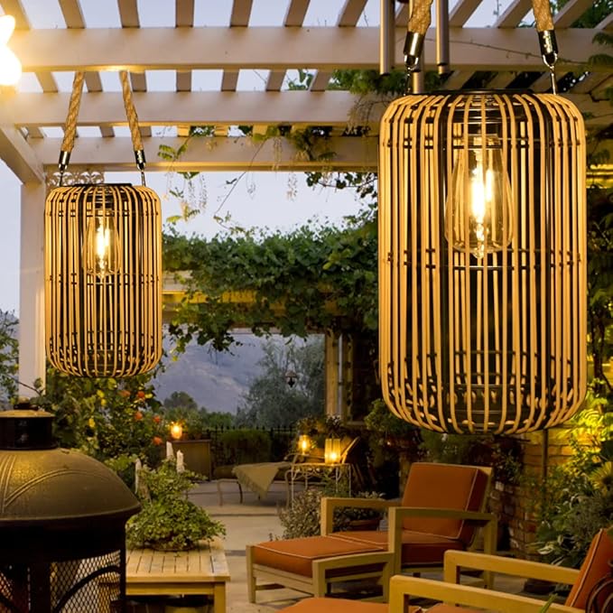 - 【High Efficiency & Eco-Friendly】This solar lantern outdoor hanging is equipped with polycrystalline silicon solar panels and built-in light sensor. It can automatically turn on/off, the built-in sensor can automatically turn on the light at dusk, providing you with warm light until late at night.