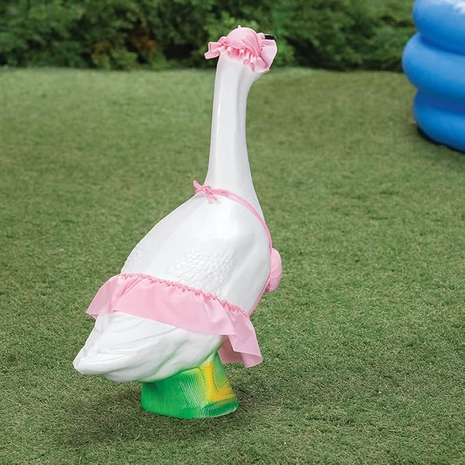 - Playful Design: Take a gander at the itsy, bitsy, teeny-weeny, little pink goose bikini—complete with a sun hat and classic summer shades! This delightful outfit will make your garden goose the star of any pool party, summer barbecue, or vacation celebration.