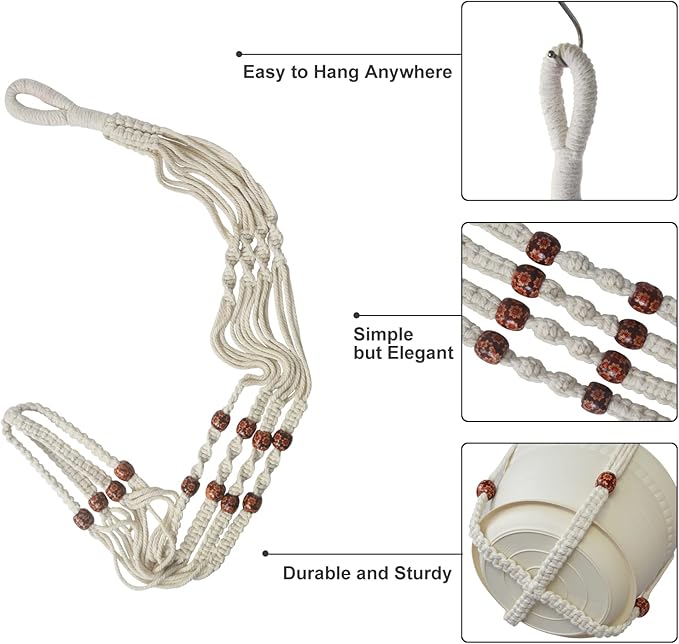 - 【Simple but Sturdy】- Checrxy macrame plant hanger is handmade from eco-friendly cotton rope, exquisite and will not rust; Meantime, the design of the open woven basket can be easily put into the planter, which is convenient to use.