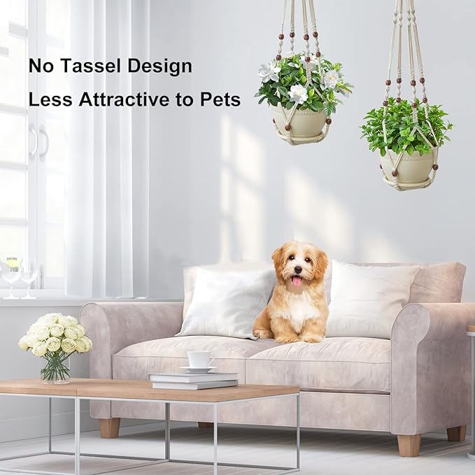 - 【No Tassel Design】- Unlike most on the market, our macrame plant hanger do not have the usual tassel, which not only saves space but is also less appealing to pets, reducing the chance of plants being knocked over.