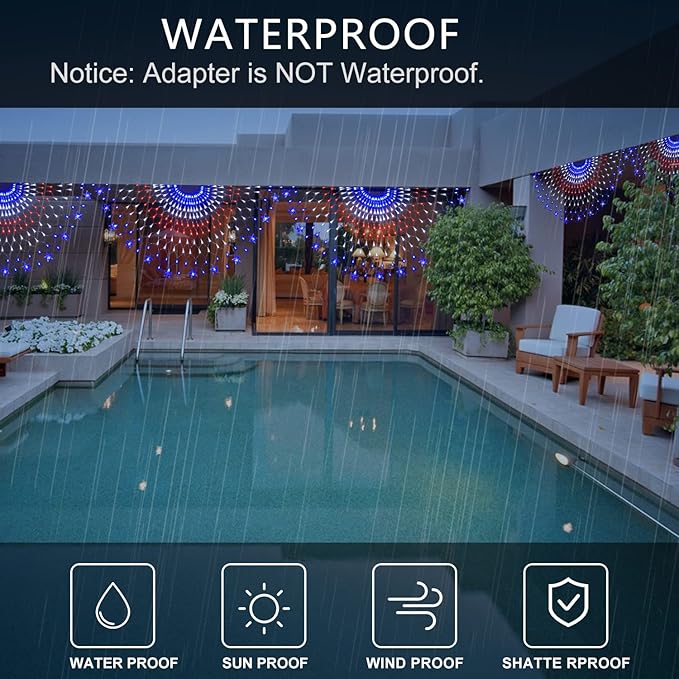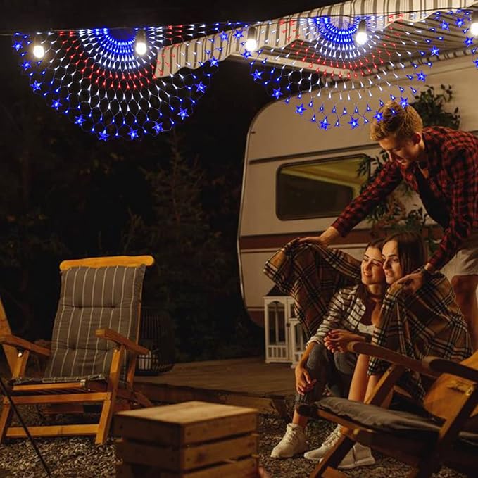 American Flag Lights, 243 LEDs Red White and Blue Lights Half Fan Flag Light, Waterproof US Flag Lights for Yard Garden, Festival, Holiday, 4th of July Independence Day Decorations