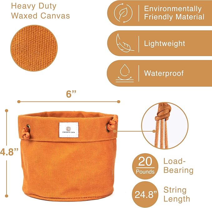 - Its carefully crafted waxed canvas material comes fastened with 3 flexible, weight-bearing ropes to hold your indoor plants in place and keep your plant pot in shape. The ropes of our hanging planter measure 24” in length, giving you enough length to work with. Shorten or lengthen by readjusting the knots to your desired height and voila!