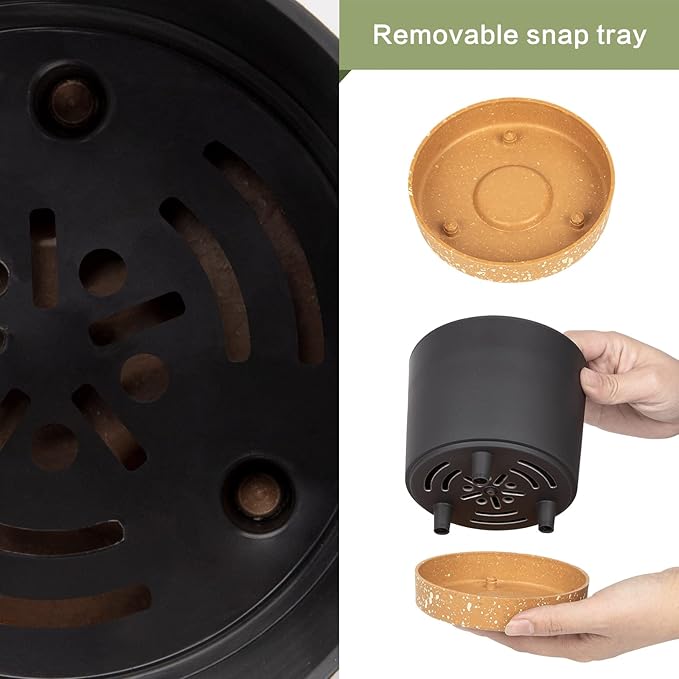 - Easy draim holses Movable tray:Excess water flows out the dual drainage holes to prevent overwatering and flooding. Plates capture overflow water for easy cleanup. It is recommended to shop a layer of filler in the bottom of the flower pot.