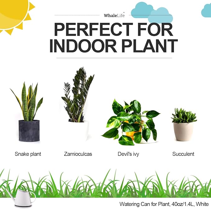 WhaleLife Indoor Watering Can for House Bonsai Plants (1.4L, White)