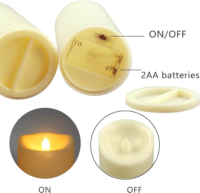 - Look and flicker like real candles, and safe to use with. With flickering LED bulb and realistic appearance, the plastic resin battery candles look like and flicker like real candles. Battery operated LED flameless candles are safe to use with, especially when you have children, seniors and pets at home. There is no fire hazard, no fume and no wax mess.