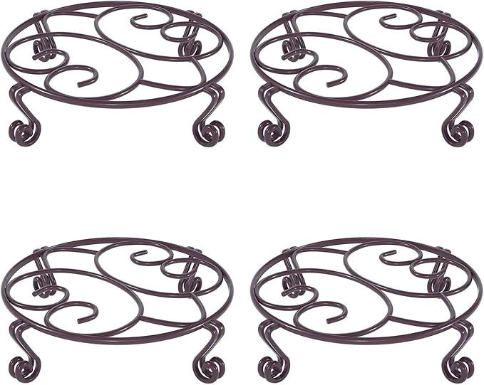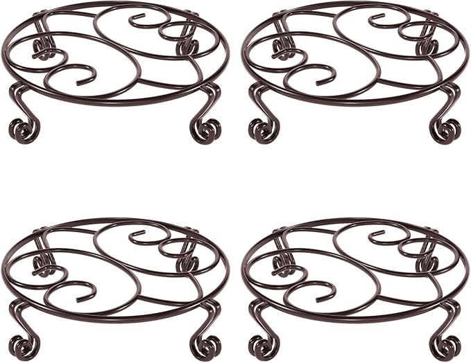 Yimobra 4 Pack Plant Stand for Flower Pot Heavy Duty Potted Holder Indoor Outdoor Metal Rustproof Iron Garden Container Round Supports Rack for Planter (4PC Brown 11.8 x 3.1IN)