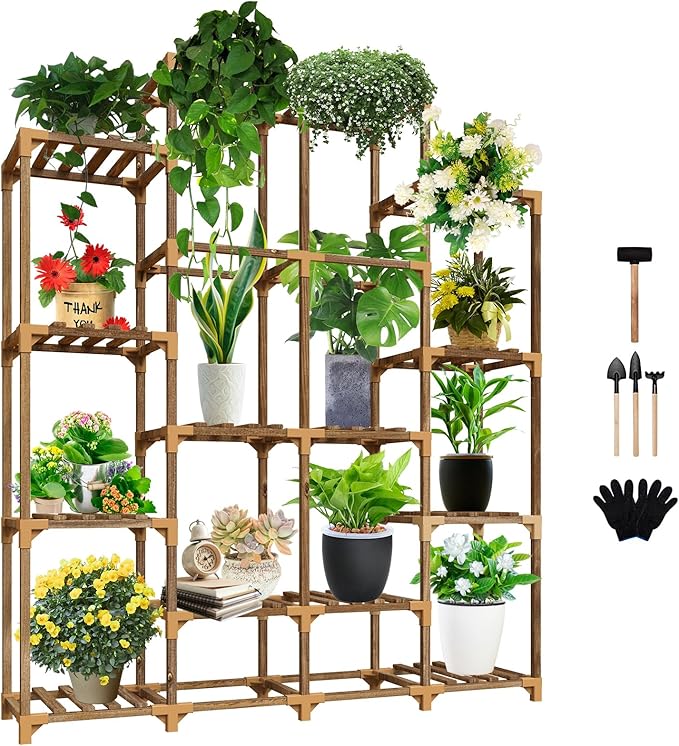 Uneedem Tall Shelf for Multiple Plants Indoor Outdoor 14 Tiers 16 Pot Holder Large Rack Wood Stand Shelves for Room Corner Balcony Garden Patio